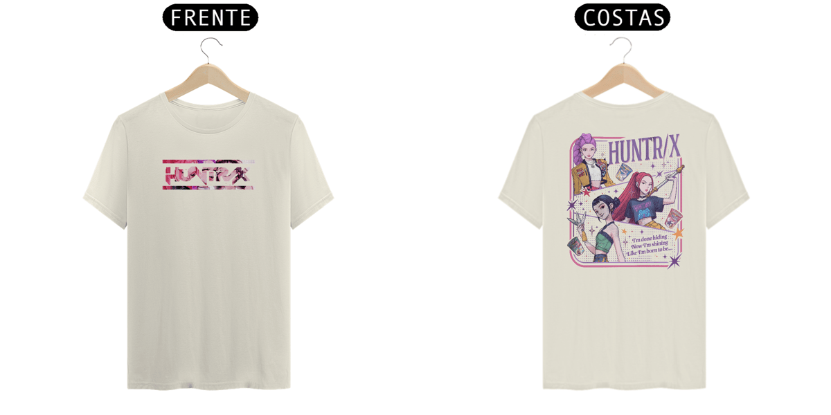 A Camiseta Prime da coleção Huntrix chegou para elevar o seu visual ao nível máximo. Feita para quem gosta de peças marcantes, com presença, essa camiseta une qualidade premium, conforto extremo e uma estampa intensa e cheia de personalidade — perfeita para quem vive no modo hunter.